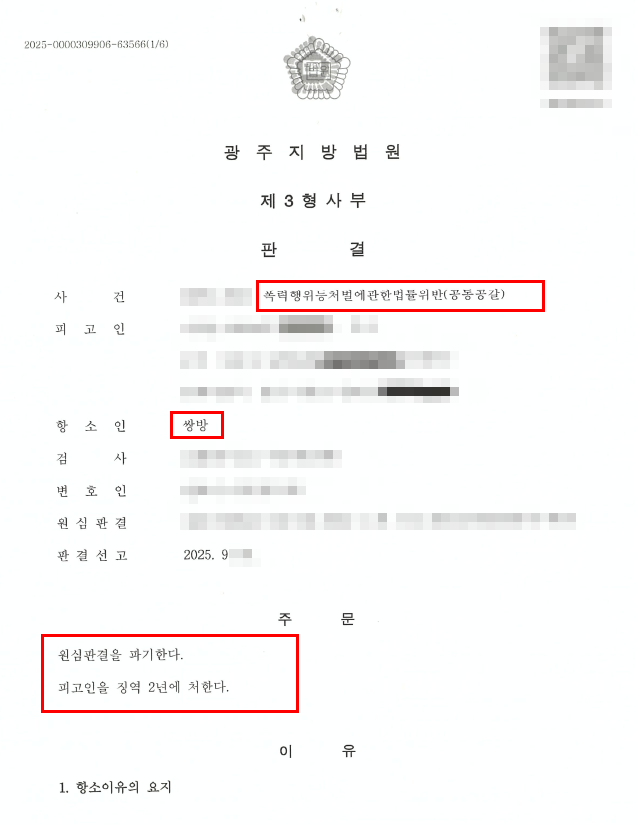 재판부는 저희의 주장을 모두 받아들여, 가해자들에게 징역 2년의 실형을 선고했습니다.