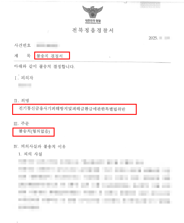 전기통신금융사기 방조범, 경찰 단계 '혐의없음'으로 종결