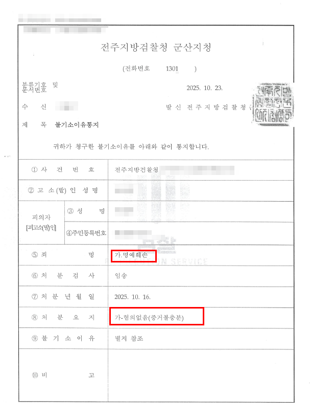 전주명예훼손 변호사 증거불충분[혐의없음] 성공사례