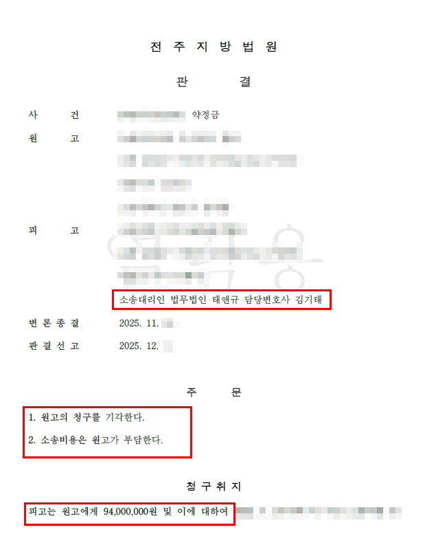 안녕하세요. 법무법인 태앤규 김기태 변호사입니다. 살다 보면 "어? 나 그때 그런 약속 한 적 없는데?" 싶은 일로 곤란해질 때가 있죠. 그런데 그게 친구 사이의 밥 한 끼가 아니라, 거액이 걸린 소송이라면 이야기가 달라집니다. 오늘은 누군가가 "돈 주기로 약속했잖아!"라고 주장하며 무려 9,400만 원을 청구해 온 사건을, 저희가 깔끔하게 '전액 방어(기각)' 해낸 이야기를 들려드릴게요.사건개요