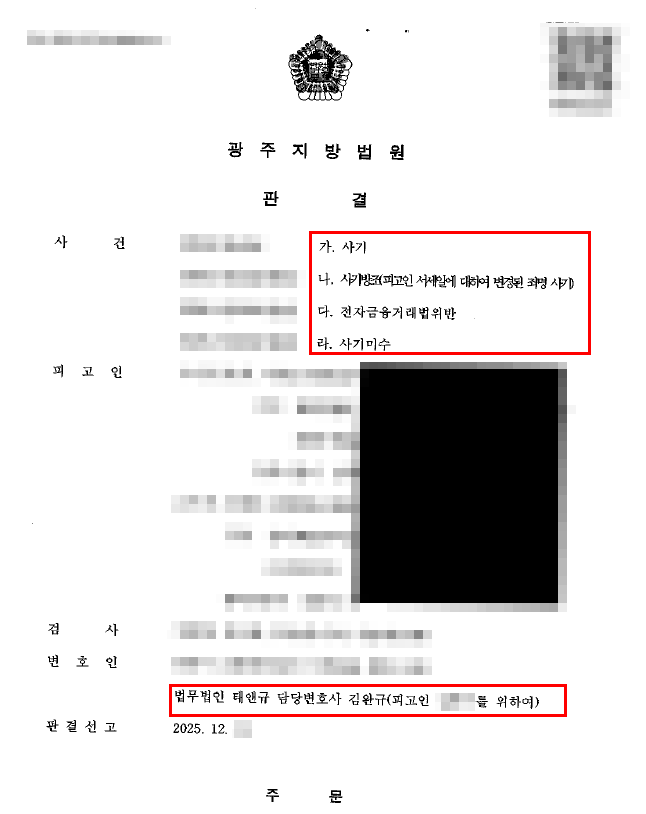 김완규변호사 전주보이스피싱전문변호사 보이스피싱, 전자금융거래법 집행유예