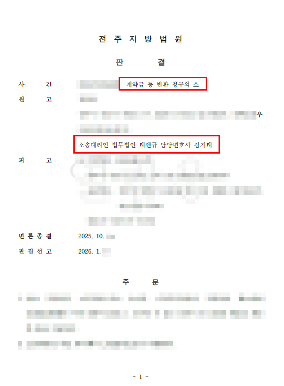 김기태변호사 전주민사전문변호사 계약금등 반환청구 소송 승소사례 지역주택조합사례
