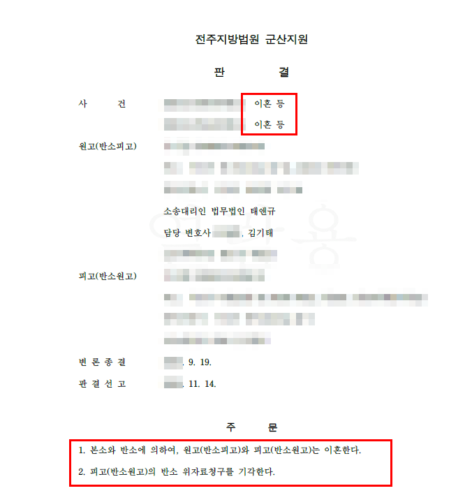이혼 방어 / 억울한 위자료 기각 / 재산분할 전담